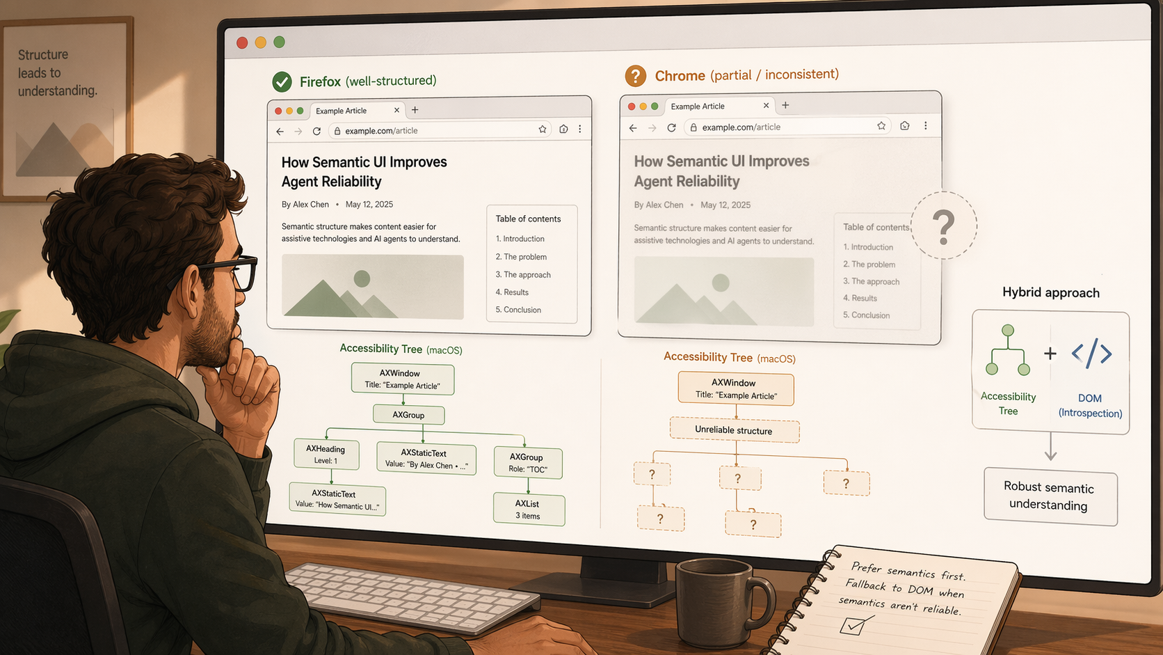 When it works, it gives you structured, semantic, low-latency context without reconstructing meaning from pixels. That simplifies the system - vision becomes a fallback for the cases AX can't cover, not the default for everything.